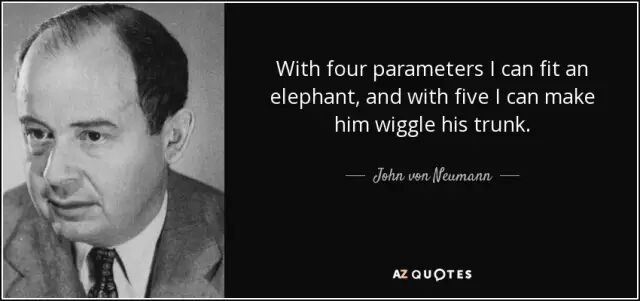 美国数学家冯纽曼 (John Von Neumann) 曾说, "给我四个参数,我的模型可以拟合一个大象. 给我五个参数, 我可以让它扭动它的鼻子。"